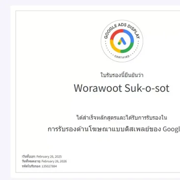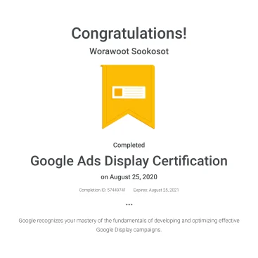การรับรองด้านโฆษณาแบบดิสเพลย์ของ Google Ads CERTIFICATE