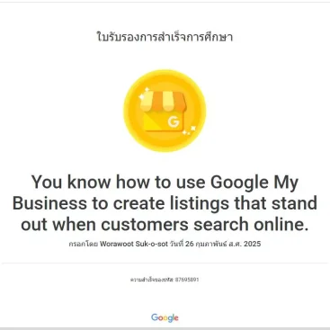 ใบรับรองการสำเร็จการศึกษา : Google My Business CERTIFICATE