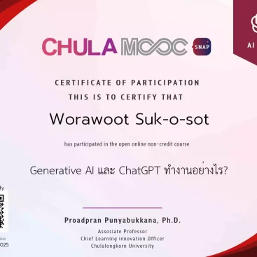 Generative AI และ ChatGPT ทำงานอย่างไร? : Chula Mooc CERTIFICATE